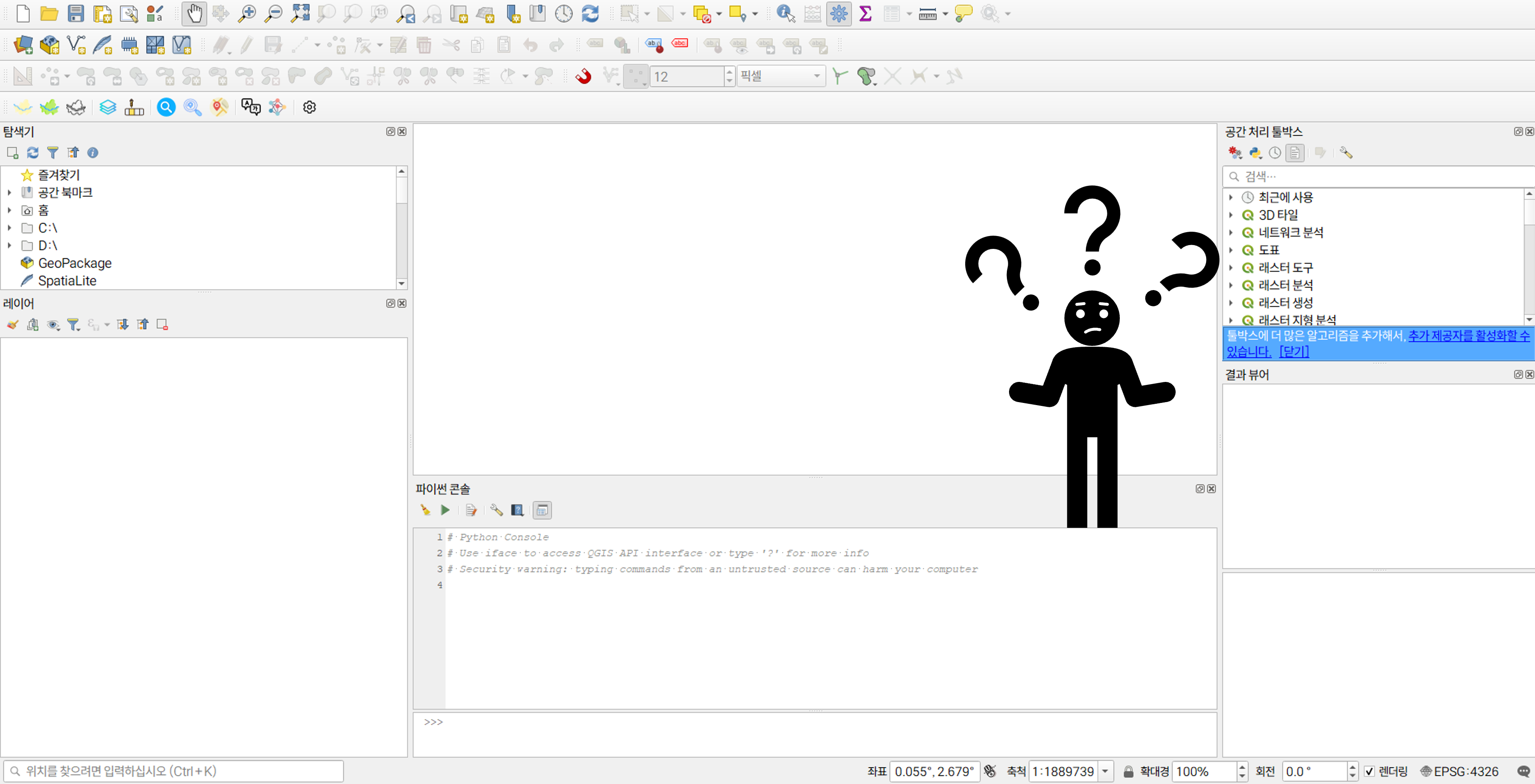 오랜만입니다. 블로그를 쓰지 않았던 기간동안 학위도 따고 일도 하며 바쁘게 살았는데요, 이제 다시 조금 여유가 생겨 PyQgis를 공부하기로 마음을 먹었습니다. 차근차근 공부하는대로 올려보겠습니다,, 제가 자주 포스팅할 수 있기를 바라며,,,